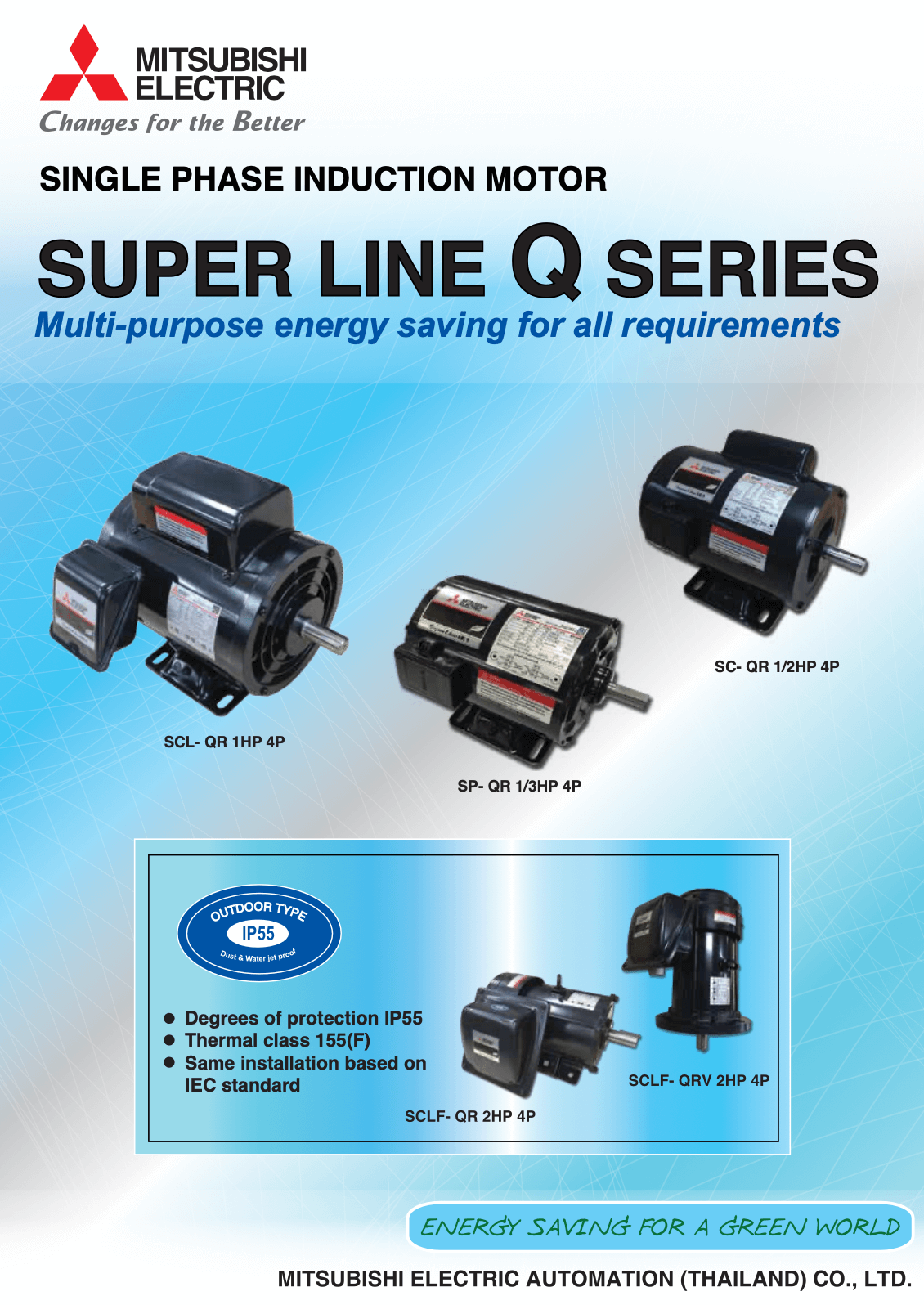 The Mitsubishi Electric Single-Phase Induction Motors are designed with versatility and user-centric innovation in mind. Developed to meet a wide range of application needs.