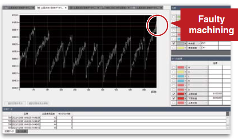 Variation of production and High-mix Low-volume manufacturing are often the cause of human error. How we can minimize the risk of human error is our important topic. NC MachiningAID automatically learns the conforming cut and detects errors, such as inadequate coolant discharge rate, improper workpiece chucking, and incorrect tool compensation settings. This is also applicable to machining errors caused by incorrect robot maneuvers.