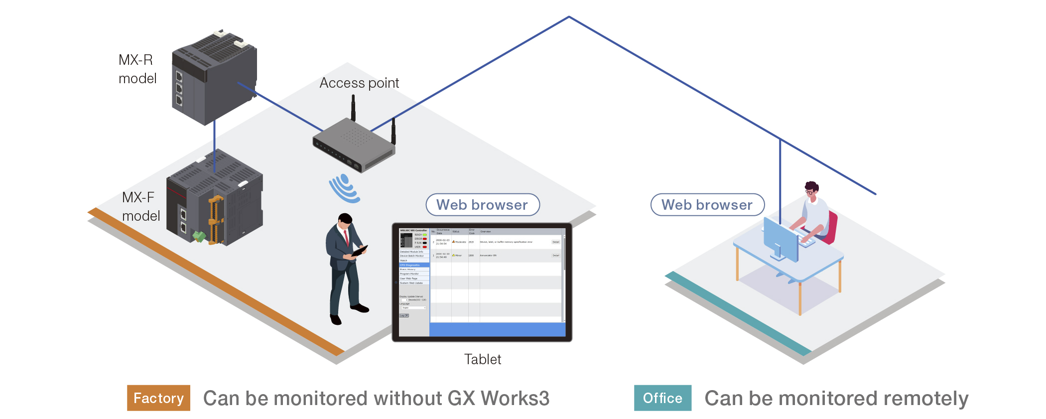 View error details, program operating status, and device status in your browser for a quick initial assessment when a problem occurs.