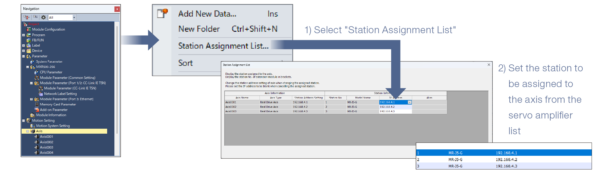 - ■The IP address of the station to be assigned to the axis can be set at once.
