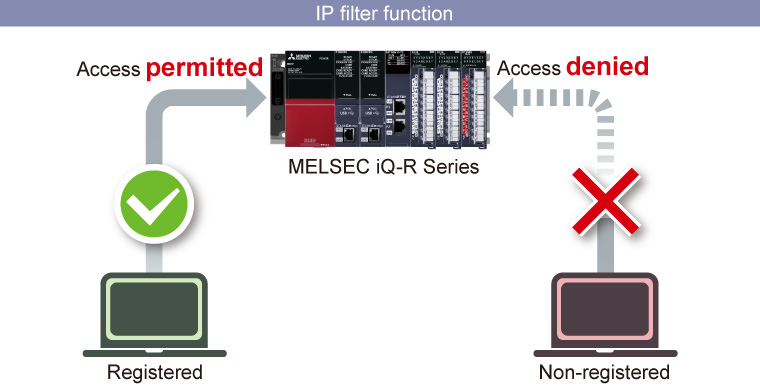 - The CPU module can be accessed only from the computer whose IP address is registered (IP filter function)