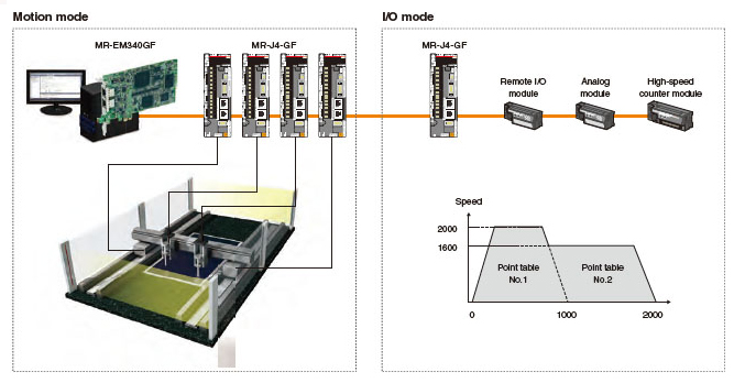 - Motion mode for a wide range of motion control functions, such as multiple-axis positioning, synchronous control, etc.