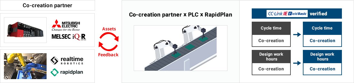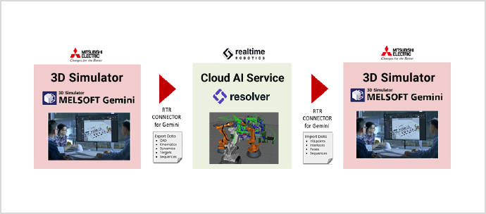 By combining Realtime Robotics' motion planning technology and Mitsubishi Electric's FA solution software products and FA control system devices, we will achieve process optimization of manufacturing lines through digital twins.