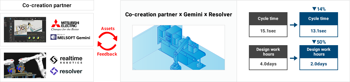 We were astonished when "Gemini-Resolver" instantly outperformed the cycle time of an existing program optimized by skilled engineers. Also, the training time was significantly reduced from four days to just two. While creating new value together, we are also exploring new business challenges for customers aiming at virtual commissioning.