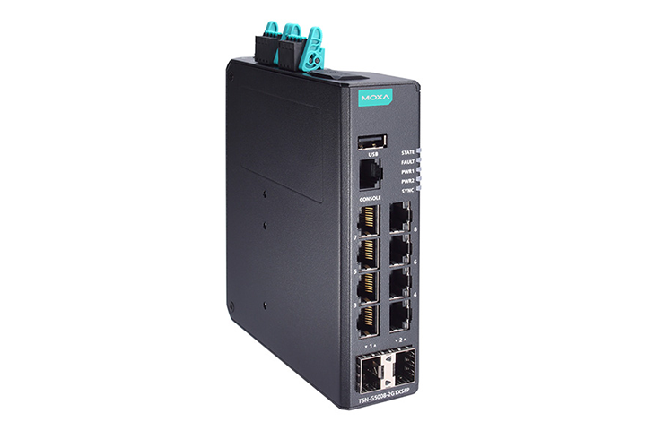 The TSN-G5008 Series Ethernet switches are equipped with 8 Gigabit Ethernet ports and up to 2 fiber-optic ports. The full Gigabit design makes them a good choice for upgrading an existing network to Gigabit speed or for building a new full-Gigabit backbone for future high-bandwidth applications. The compact design and user-friendly configuration interfaces provided by the new Moxa web GUI make network deployment much easier. The TSN-G5008 Series has received a CC-Link IE TSN Class B certificate.
