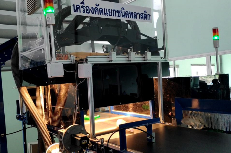 NIR technology can detect under surface material such as plastic type. We apply NIR technology to do separate unknown plastic system and categorize its into right material. After this process, we have granulator machine and washing machine for produce clean flex for reuse this plastic again.