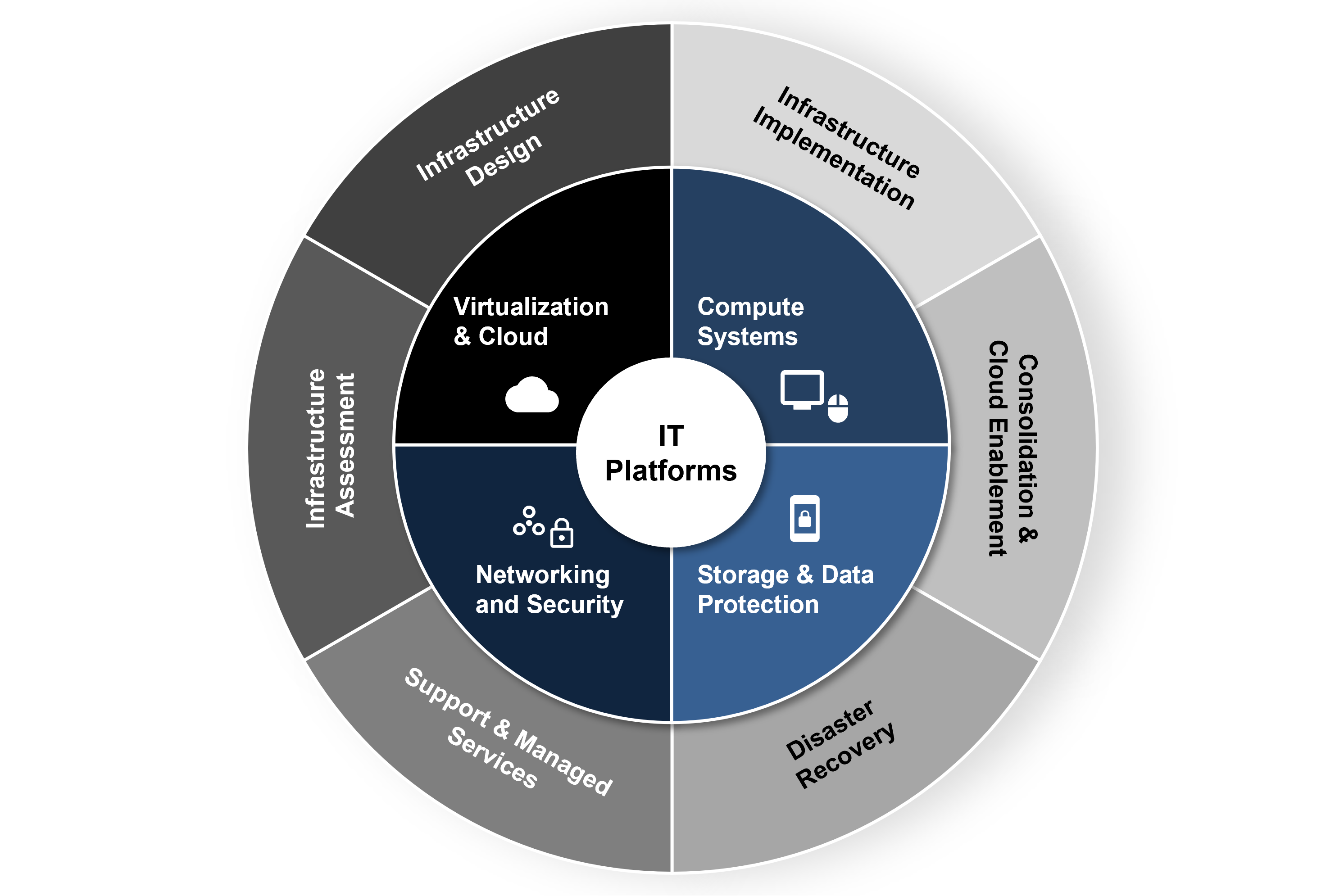 Infrastructure is the backbone of your ICT environment. We offer a comprehensive coverage of infra solutions to enable optimised protection, high availability and scalability to safeguard your environment: