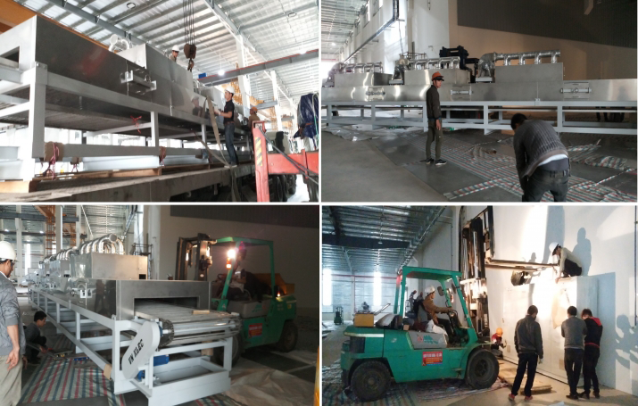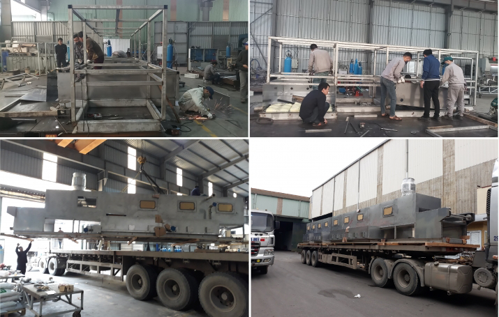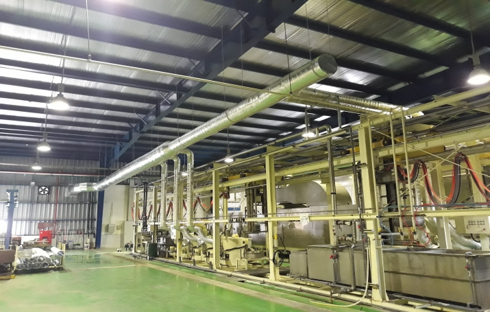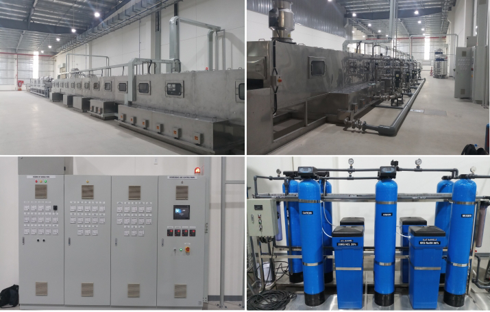 42m long system: washing, drying, cooling materials
