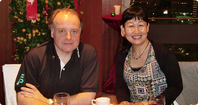 Dr. Gunther Kegel (left), CEO of Pepperl+Fuchs Group, with Tomoko Ohta at a dinner event during an FA Sales Conference in Singapore