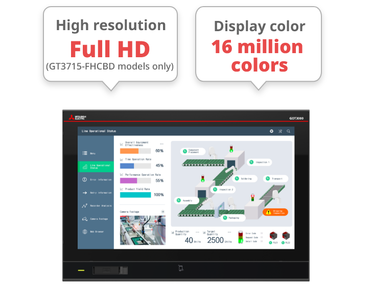 The GOT3000 features a built-in web browser, which includes the GOT Mobile function for monitoring other GOT devices. If connected devices support web server function, operators can quickly perform initial troubleshooting via the browser without needing a PC or tablet. Standard website viewing is also supported.