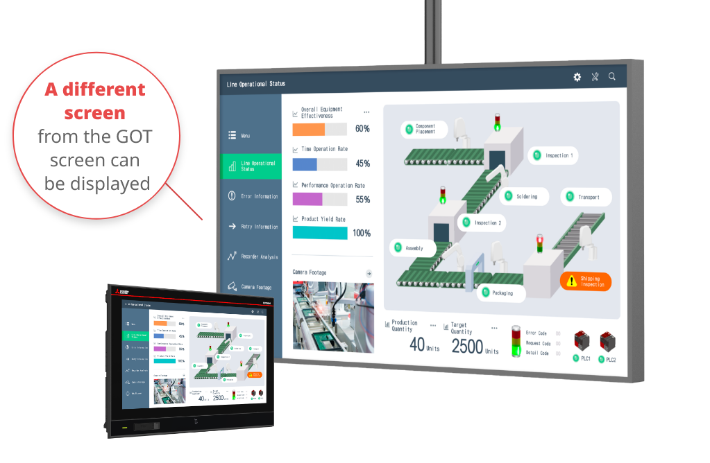 The GOT3000 supports OPC UA connectivity, enabling data aggregation from field devices through the GOT and seamless integration with upper-level systems such as SCADA. Even devices that do not support OPC UA can be easily connected, with the GOT acting as a bridge for smooth data transfer. This solves the challenge of connecting to upper-level systems when field devices do not support OPC UA.