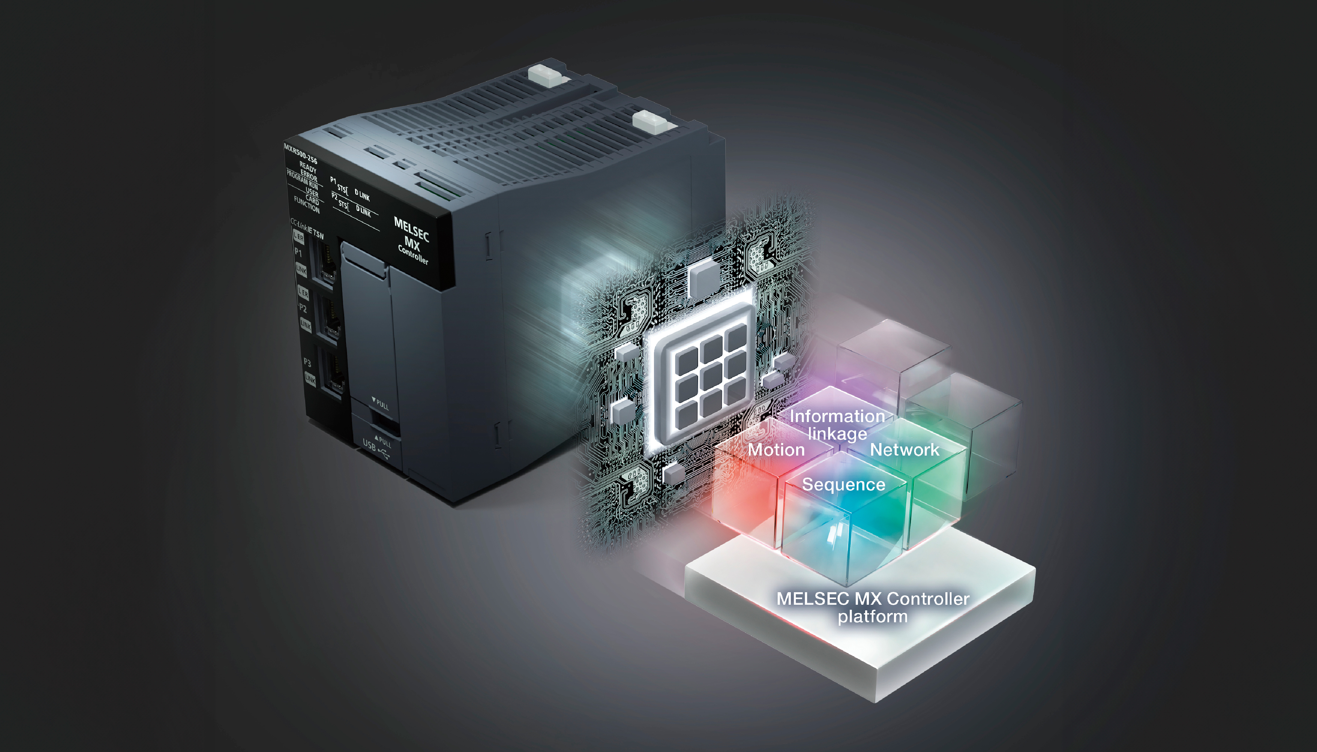 The MELSEC MX Controller integrates three types of control,