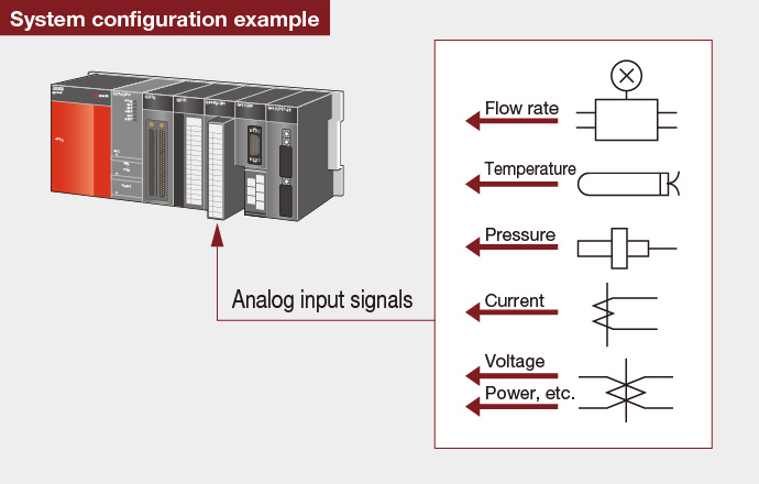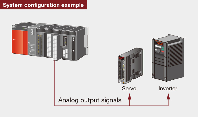 Many high-speed A/D and D/A conversion (analog) modules are available. These modules are feature packed to allow maximum flexibility when connecting to devices. Both speed and accuracy are great enough to control sensitive motion applications using servos or inverters.
