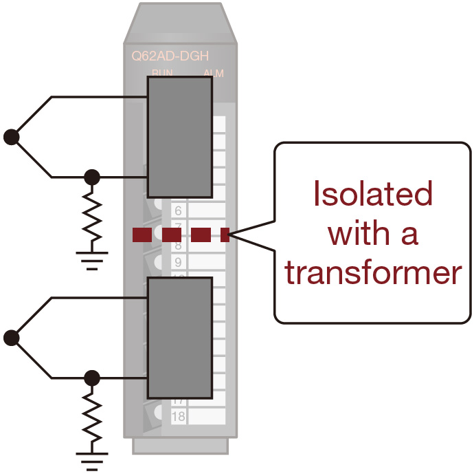 ●With channel isolated analog module