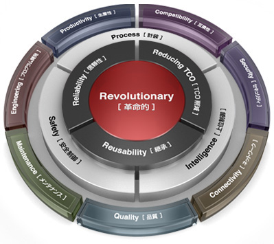 To succeed in highly competitive markets, it's important to build automation systems that ensure high productivity and consistent product quality. The MELSEC iQ-R Series has been developed from the ground up based on common problems faced by customers and rationalizing them into seven key areas: Productivity, Engineering, Maintenance, Quality, Connectivity, Security and Compatibility. Mitsubishi Electric is taking a three-point approach to solving these problems: Reducing TCO *1 , increasing Reliability and Reusability of existing assets.