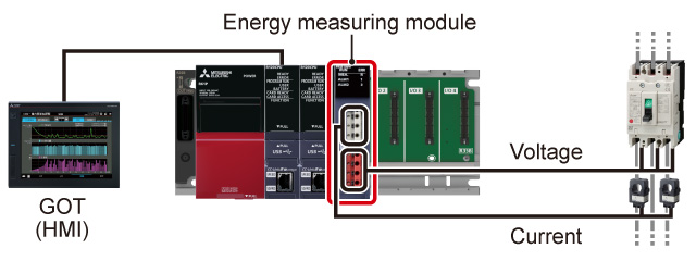 - CO 2 emissions are displayed on the GOT (HMI) allowing real-time monitoring on the shop floor. This will help raise awareness of CO 2 emission reduction in manufacturing