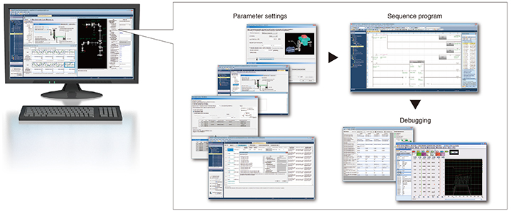 Various features have been consolidated in one software (MELSOFT GX Works3), covering from programming to debugging for a servo system consisting of Simple Motion modules and servo amplifiers.
