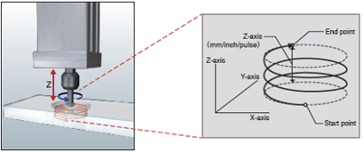 - Milling is done in a circle, with the X and Y axes synchronized to achieve the pre-set size.