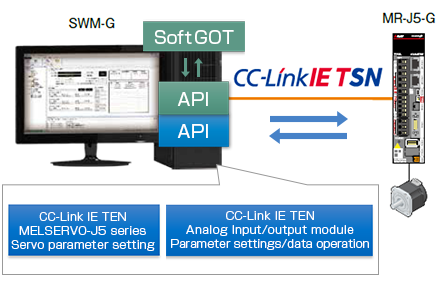 The API library enables users to set parameters for CC-Link IE TSN-compatible analog I/O modules and servo amplifiers
