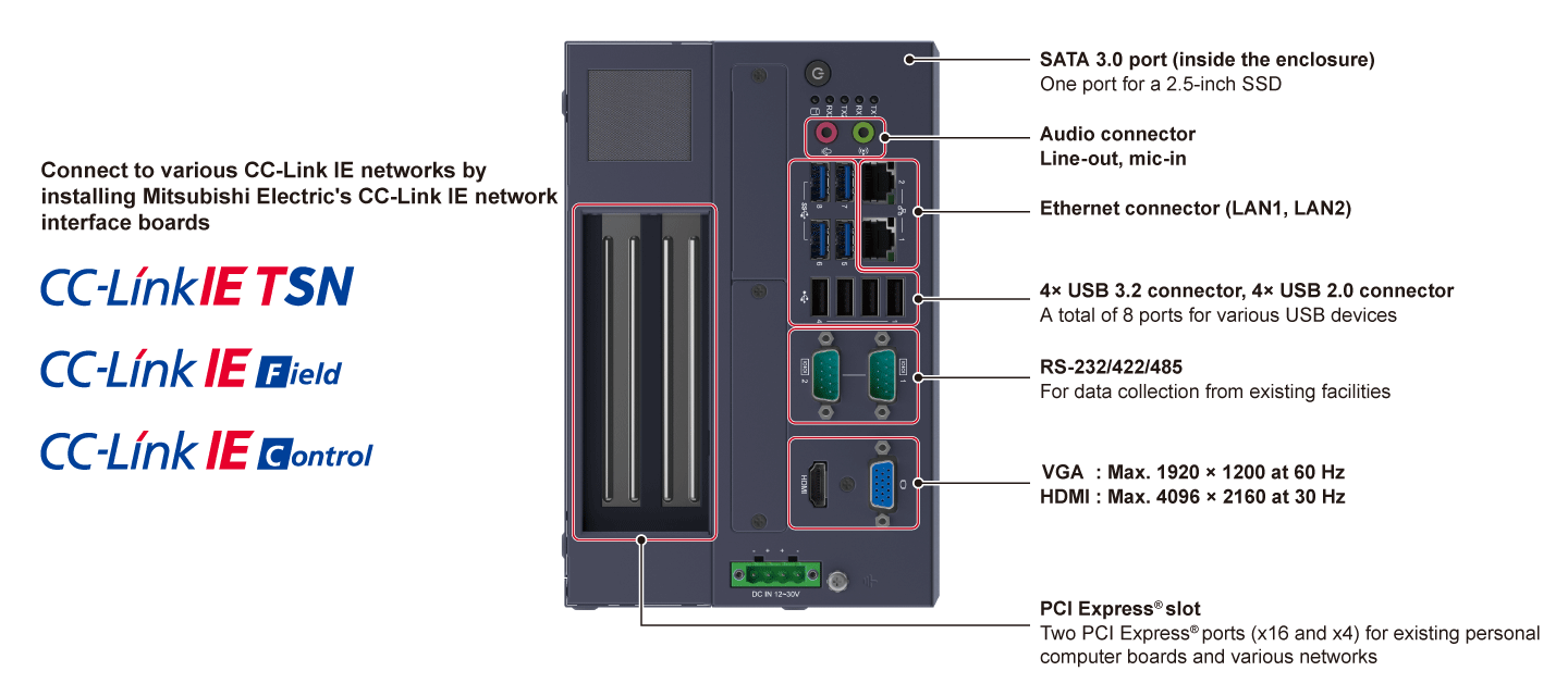 - ● Offers versatile expandability, allowing you to utilize existing personal computer boards and GPU boards.
