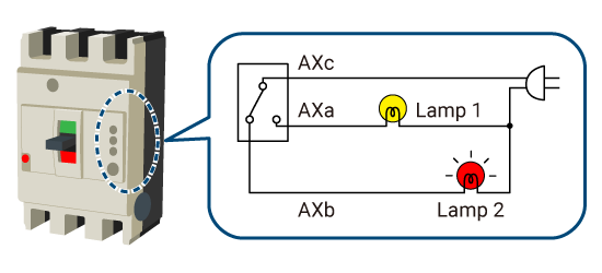 - When the circuit breaker is off or tripped: Lamp 2 lights up (AXb is closed).