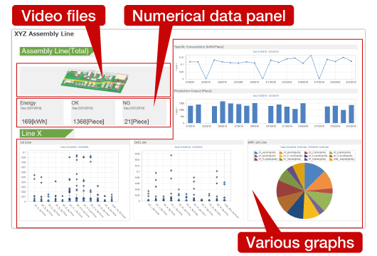 Keep track of energy using an extensive range of graphs. EcoAdviser makes it much more efficient to conduct energy conservation activities like creating reports and various daily tasks that had previously been completed using spreadsheet software. It also leverages visualization to assist with initiatives implemented at workplaces, and can help raise awareness by boosting understanding.
