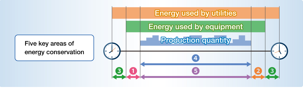 An approach that focuses on five key areas of energy conservation perspectives by drawing on Mitsubishi Electric's know-how developed over many years, and automatically identifies energy loss from each of these perspectives.