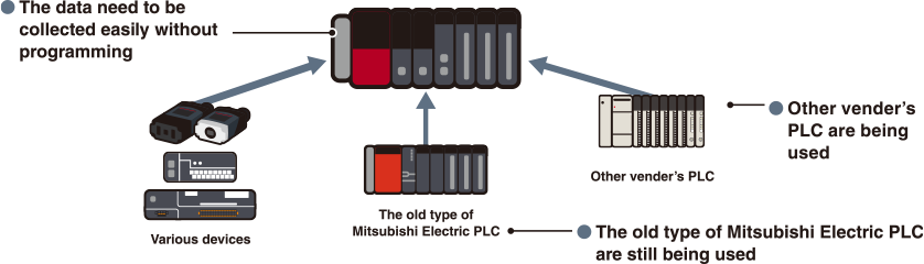 Data collection from Mitsubishi Electric PLC and Other vendor’s PLC is also possible.