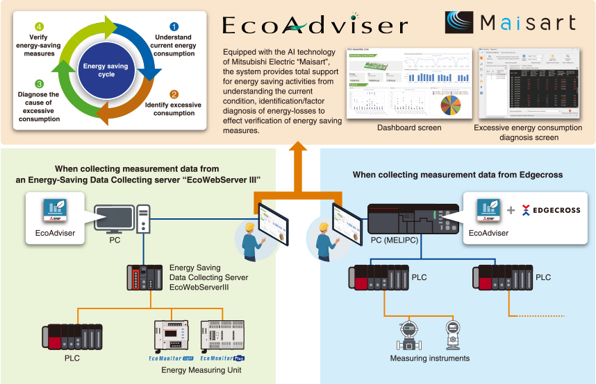 A wide range of analysis is possible with the utilization of AI technology when collecting energy-related data such as power consumption and the production-related data stored in PLC.