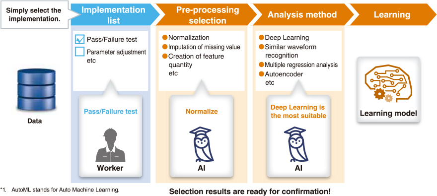 Use MELSOFT MaiLab to automatically execute everything from pre-processing of data and selection of analysis method to creation of learning models.