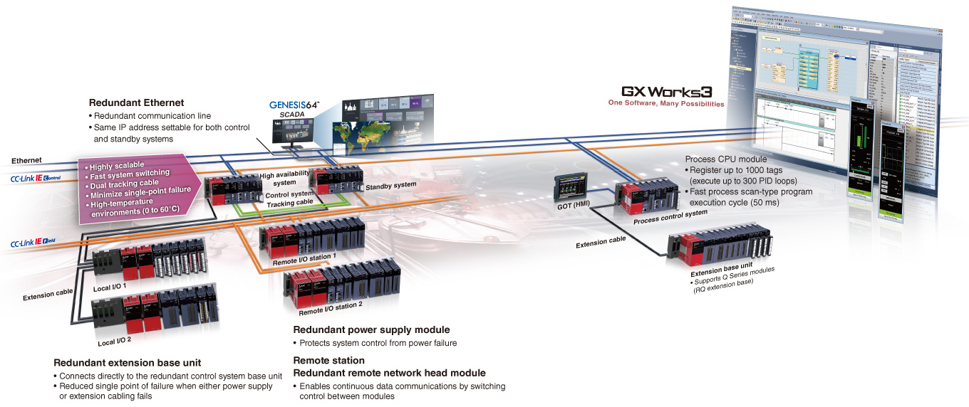 The MELSEC process/redundant system is an open and highly flexible general-purpose system, rather than highly-specialized distributed control system (DCS).
