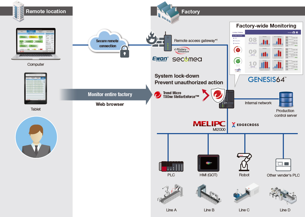 * Using the Ewon/Secomea remote solution, users can easily and safely construct a remote access environment.