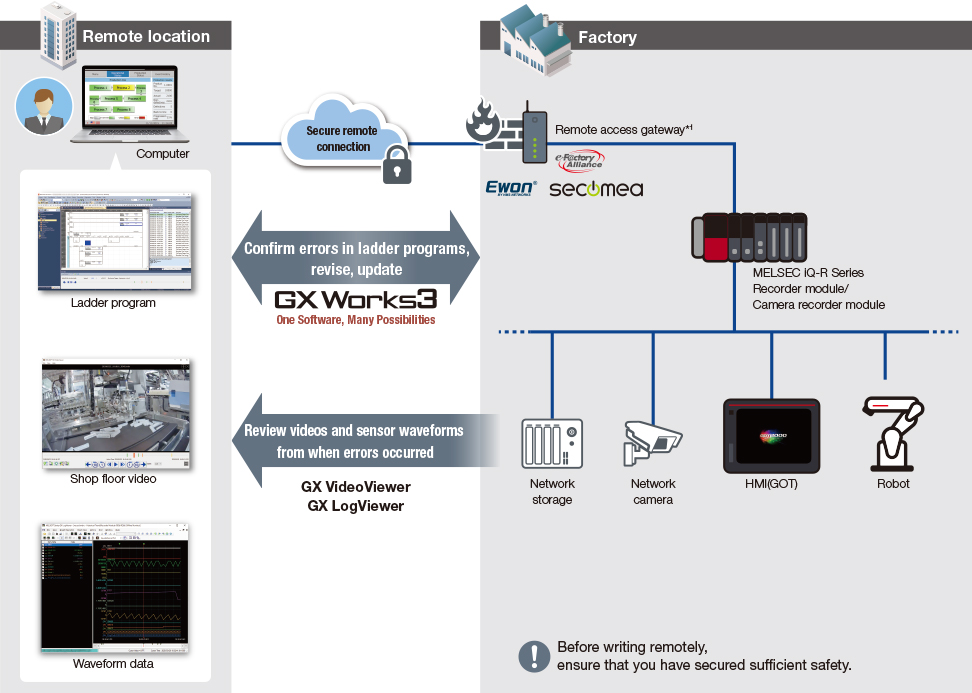* Using the Ewon/Secomea remote solution, users can easily and safely construct a remote access environment.