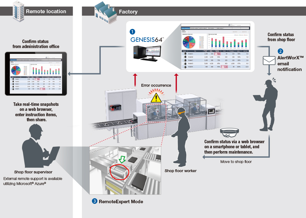 (1) Visualization of factory, line, and equipment status using GENESIS64™.