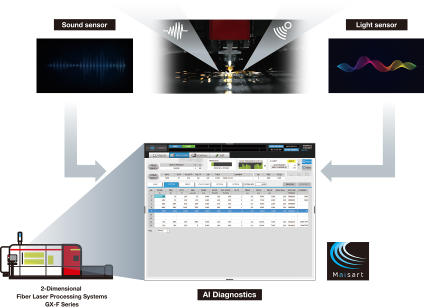 An AI-assisted function automatically detects and adjusts processing defects to optimal machining conditions to support continuous automatic operation of processing machines.