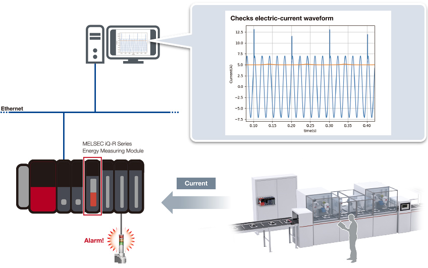 The in-rush current waveform of equipment at the time of initial operation is measured in a short cycle of 10 ms to monitor any changes in electric-current waveform.