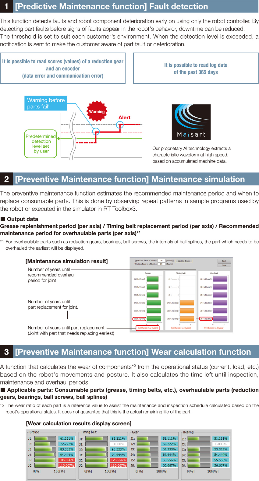- The recommended maintenance period can be calculated with the robot operation pattern data alone at an equipment startup.