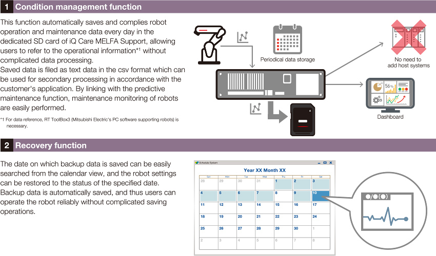 Easily compare the condition of robots with and without errors by automatically aggregating the robot daily operational information and managing the history data.