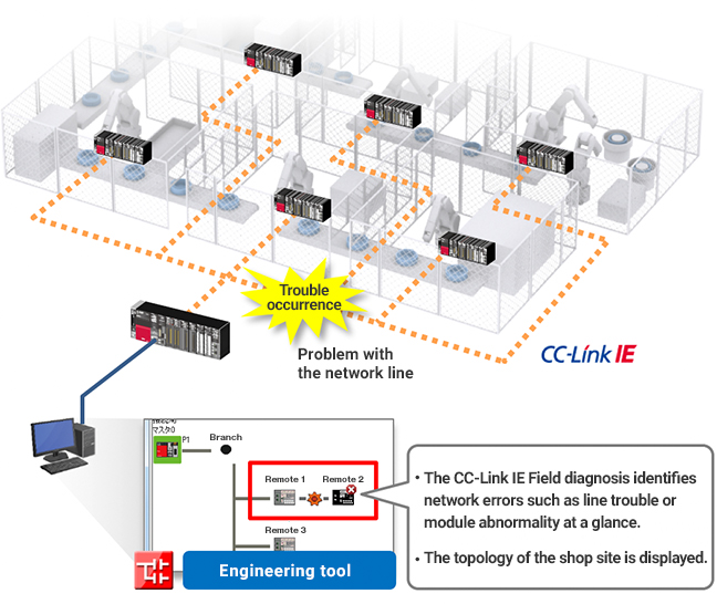 - Reduce downtime by visibly displaying the entire network and detecting the failure area quickly with the CC-Link IE Field diagnosis.