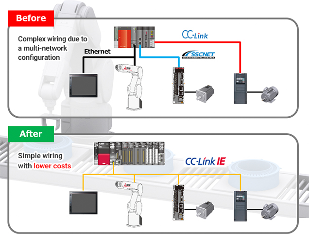 - Increase system configuration flexibility and reduce wiring costs by building an optimal network that connects PLCs, servo amplifiers, and inverters on a single network suitable for an application.