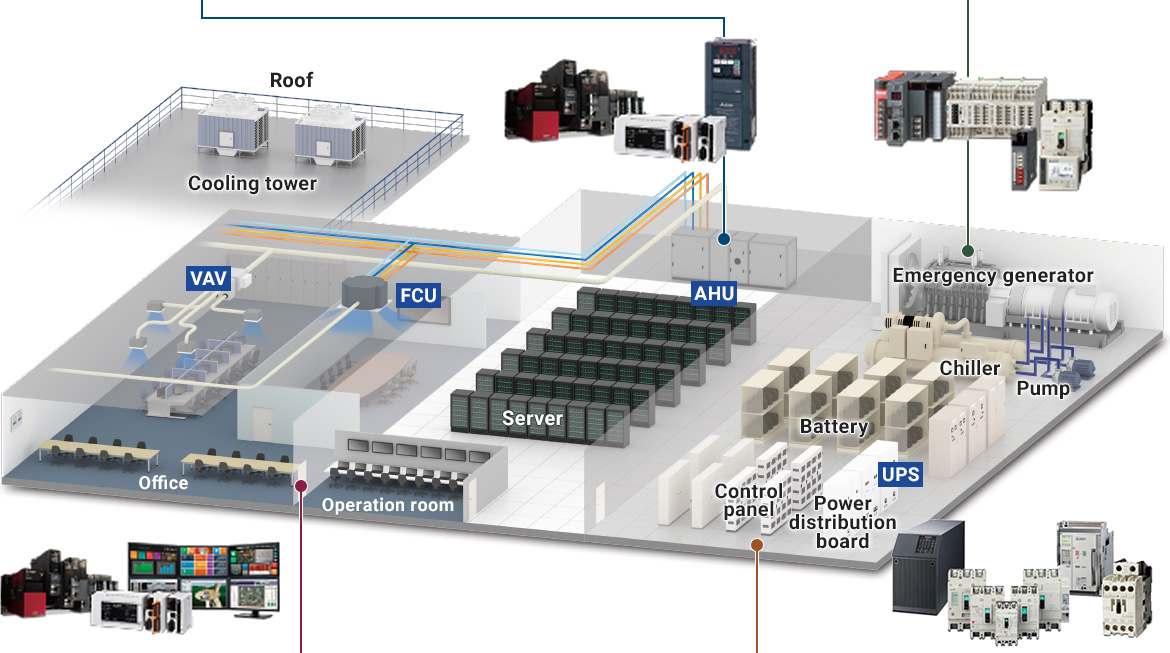 From SCADA to controllers and drive-anddistribute equipment, Mitsubishi Electric helps you build data center systems.
