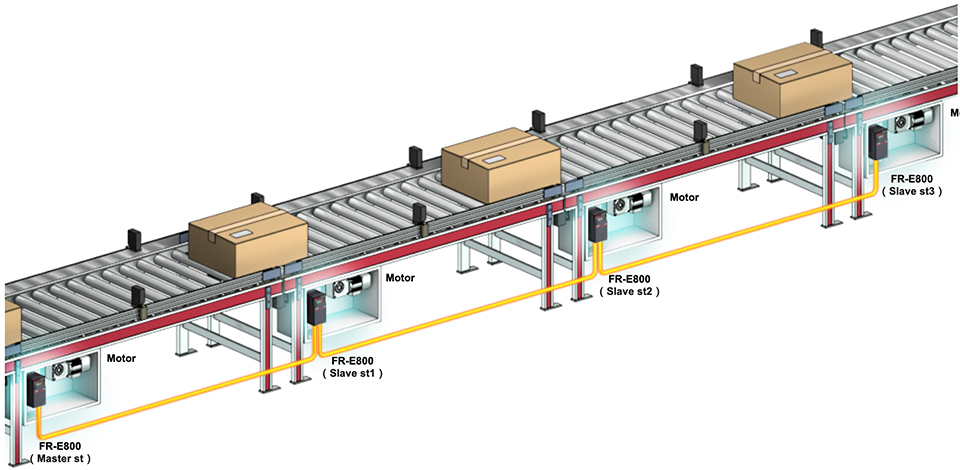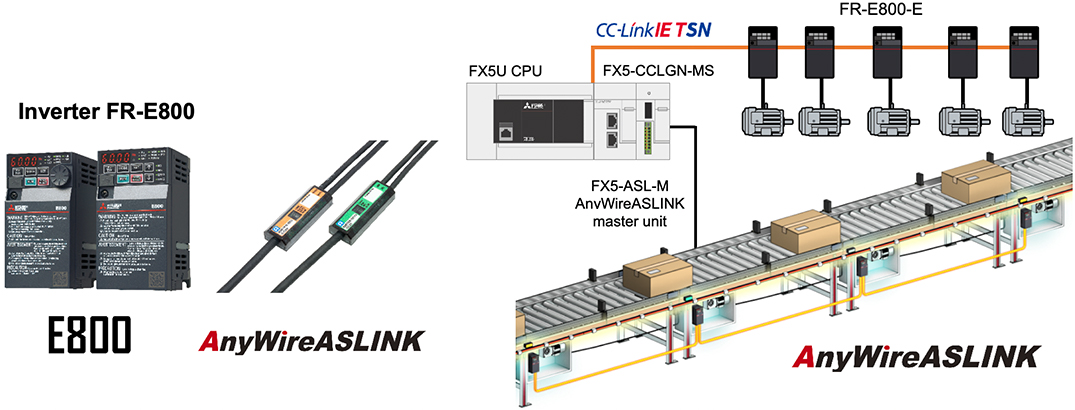 | Easy of use and variable speed operation | Simultaneous speed change and real-time collection of production site data through FR-E800 and the CC-LinkIE TSN network |