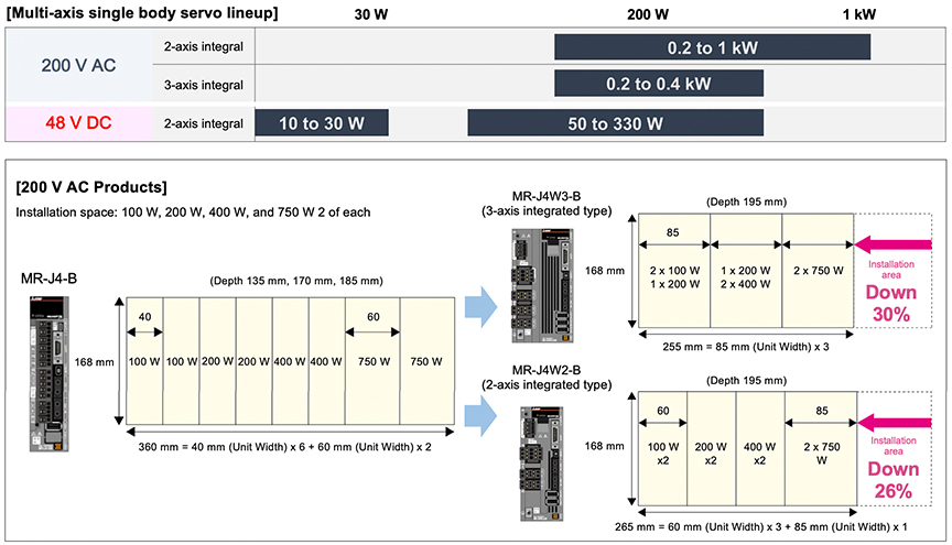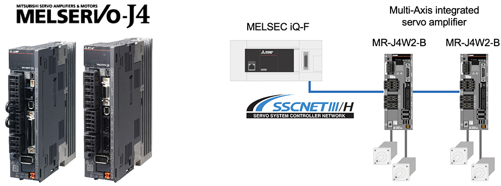 Space saving realized by utilizing multi-axis amplifier (MR-J4W)