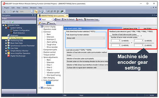 [MELSOFT GX Works3 Fully Closed Control Setting Screen]