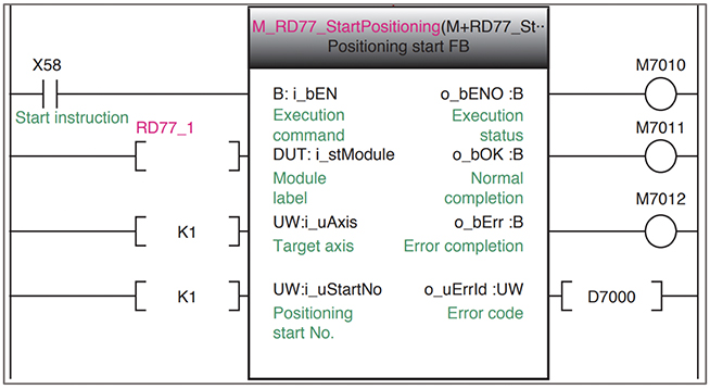 With the unit FB of MELSOFT GX Works3, motion control such as positioning control and advanced synchronization control can be programmed easily.