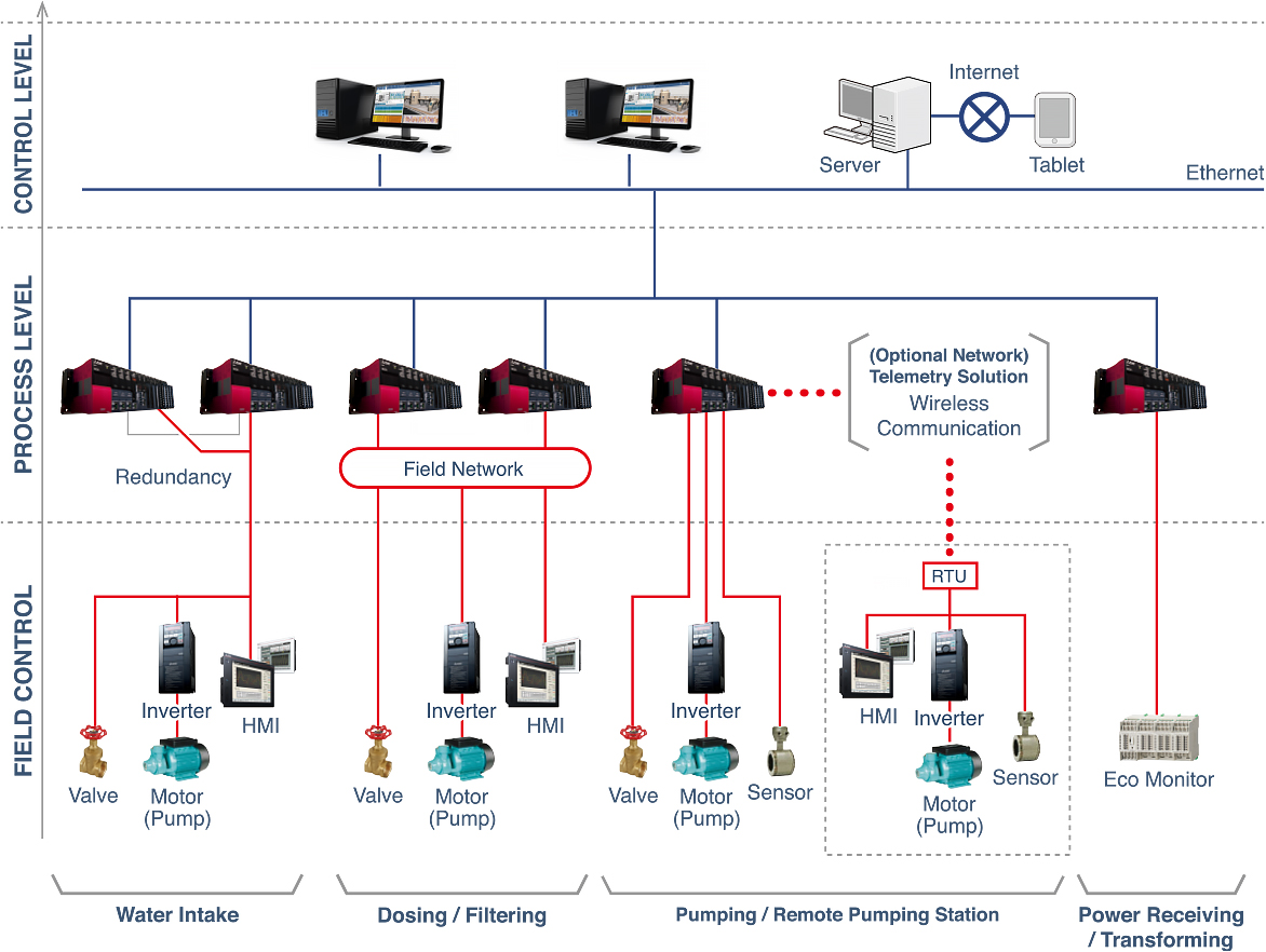 For over 50 years, we have provided cutting-edge, reliable solutions for water treatment automation in Japan and around the world. Mitsubishi Electric offers a broad lineup of energy-efficient inverters and monitoring & control systems that can seamlessly integrate high-performance SCADA systems with reliable automation products. Through open networks and high-reliability controllers, we deliver integrated, flexible systems with future-proof expandability, for streamlined data management, analysis and energy management in-field and upstream.