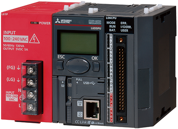 Bao gồm CPU (L06CPU-P), mô-đun nguồn (L61P), và đơn vị hiển thị (L6DSPU).