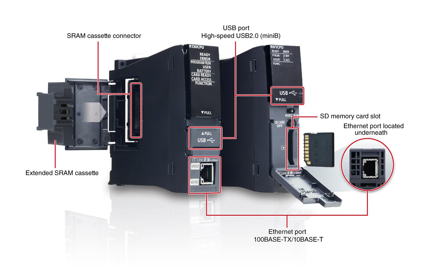 - Mô-đun CPU bộ điều khiển lập trình MELSEC iQ-R Series được thiết kế cho phép cài đặt băng cassette SRAM mở rộng trực tiếp vào mô-đun CPU. Tùy chọn này cho phép tăng bộ nhớ thiết bị nội bộ lên đến 9882K từ, mở rộng bộ nhớ thiết bị/nhãn xa hơn nữa.
