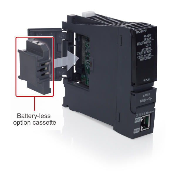 - Mô-đun CPU bộ điều khiển lập trình cho hệ thống quy mô vừa (R00CPU/R01CPU/R02CPU) bao gồm bộ nhớ không bay hơi nhúng, do đó giữ lại dữ liệu latch của thiết bị và nhãn mà không cần pin dự phòng khi nguồn điện tắt.