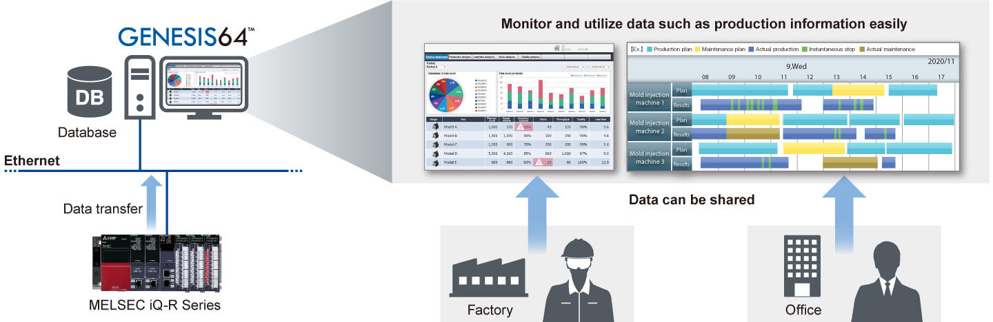 - Dữ liệu trong cơ sở dữ liệu có thể được chia sẻ cho cả văn phòng và hiện trường sản xuất, cho phép những người ở các vị trí khác nhau cùng kiểm tra đồng thời.